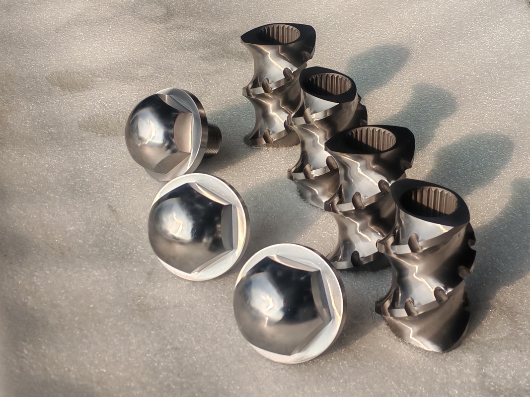 • 窒化鋼:38CrMoAlAなど。窒化処理により機械的特性と耐食性を向上させ、スクリューエレメントによく使用される材料です。