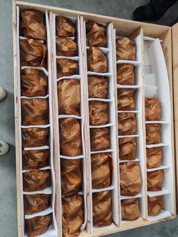 R: As peças sobressalentes da extrusora alimentar são embaladas em caixas de madeira.